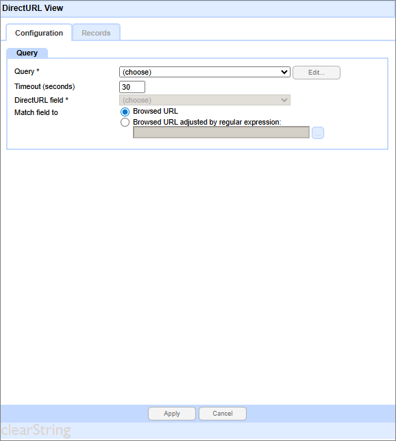 To configure the DirectURL, select a Query, and specify a field to be used.