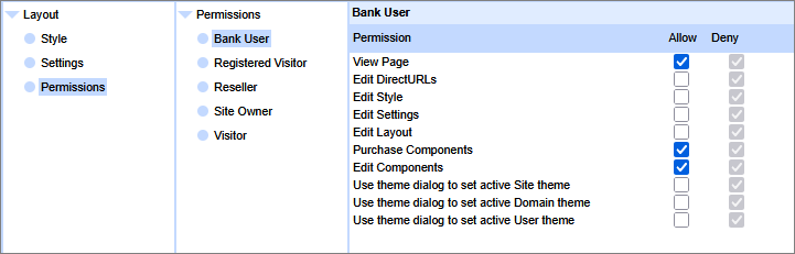 As additional User Groups beyond the built-in ones have zero permissions when launched you will need to add the 'View Page' permission to all components you want the Bank User to be able to see and use. This procedure is straightforward.