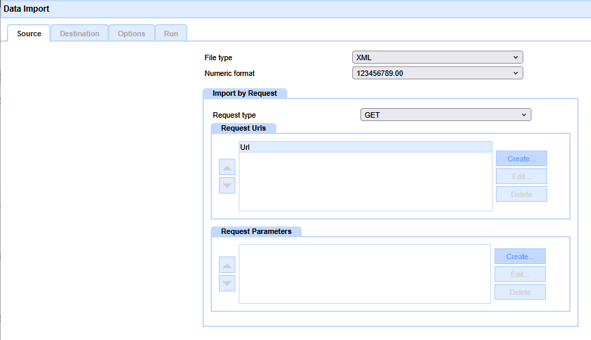 The Data Import Component  component provides a powerful interface to pull data into an application from XML sources.