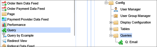 Add a Query to the website. We don't want the Query to show in the navigation - a visitor will never use it directly - so place it in the Config section created earlier, at the bottom of the tree where we earlier placed the table.