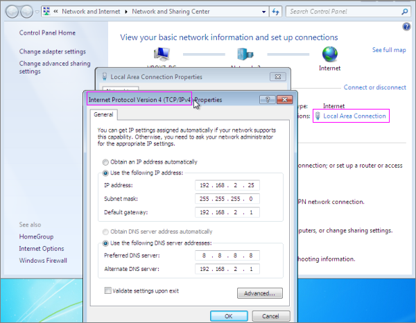 Set the address to be an available IP address on your LAN, and set set the Subnet mask, Default gateway and DNS servers.