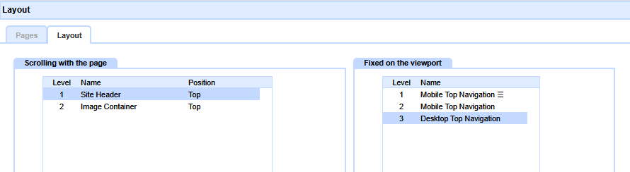 You then create a Navigation Layout Element and position it so that it is fixed on the viewport.