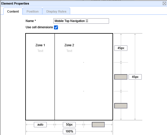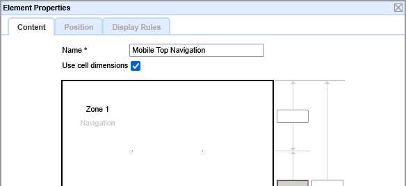 Set the Name to be Mobile Top Navigation ≡ , and configure the Zones as shown above.