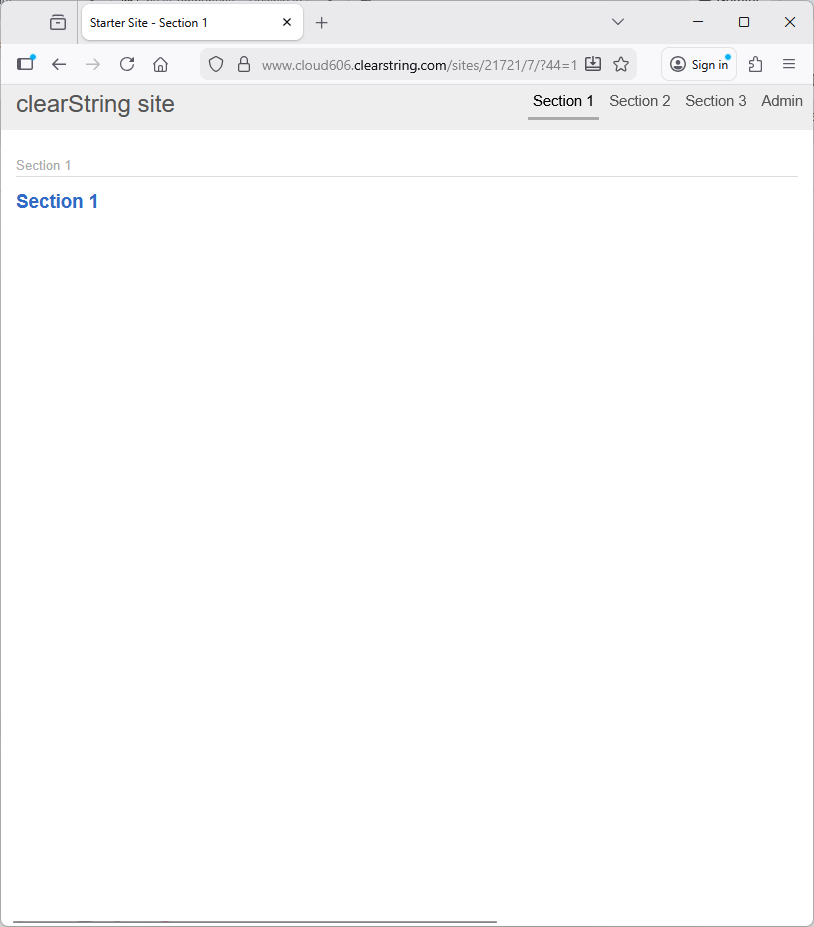 • Section 1-tab (selected with a page to view)